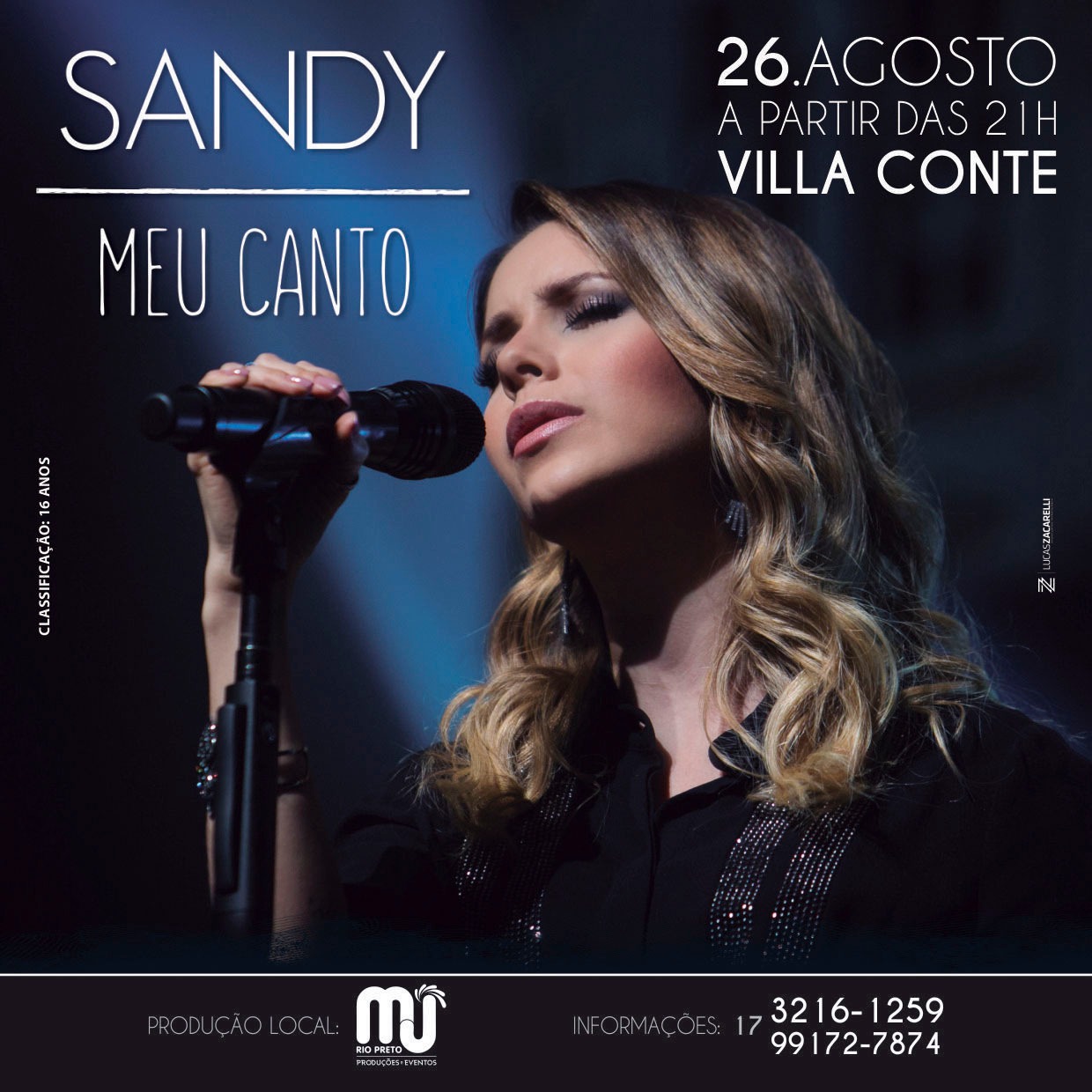 Atendendo à pedidos, Sandy volta a emocionar seu fiel público com a belíssima turnê “Meu Canto”, resultado do DVD homônimo gravado em Niterói e que coroa o melhor momento de sua carreira solo. Com shows esgotados durante a turnê em 2016 e neste ano de 2017, passando por Recife, João Pessoa, Natal, Belo Horizonte, Rio de Janeiro, São Paulo, a cantora se apresenta em São José do Rio Preto, no Villa Conte, dia 26 de agosto, sábado, a partir das 21h.