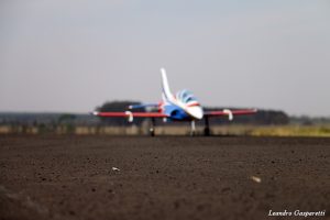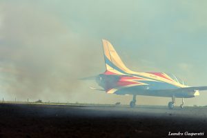 Réplicas de jatos estão realizando manobras e acrobacias no ar, encantando o público presente.