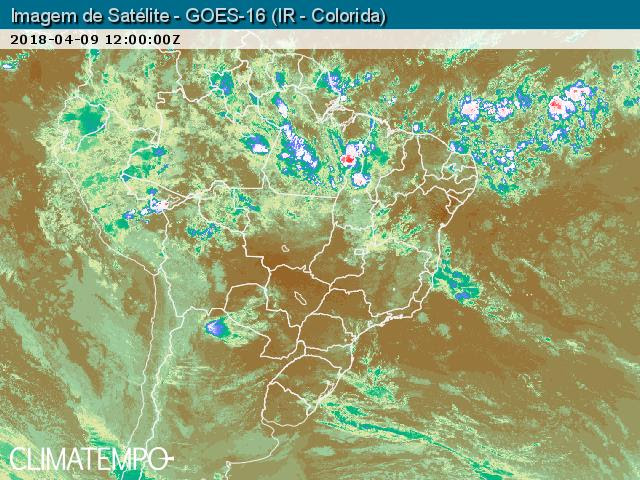 Áreas de instabilidade são observadas em grande parte do centro-norte do Brasil. Nas imagens de satélite mostram nuvens de chuva no norte do Mato Grosso, norte de Goiás e de Minas Gerais. Já no Pará e em grande parte do Maranhão, Tocantins, Piauí e Bahia, o céu ainda se encontra com muitas nuvens. Por conta dessas áreas de instabilidade aprevisão é de que venha ocorrer chuva durante algumas horas do dia sobre as regiões.