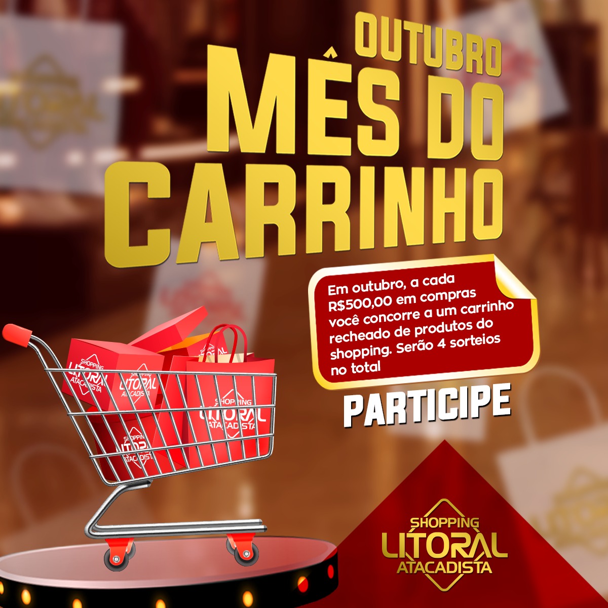 O Shopping Litoral Atacadista, de Rio Preto, lança uma novidade para os clientes. Trata-se da campanha “Outubro, mês do Carrinho”, que premiará quatro clientes durante o mês com produtos do centro comercial.